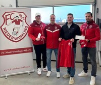 Mit der stolzen Summe von je 1500,- € wurden bereits wasserdichte Regenjacken für die Kinder als Weihnachtsgeschenk angeschafft, weiterhin ist bereits die nächste Aktion in Planung, um den Kindern eine Freude zu bereiten. Dem FCW, der den Kindern durch das Vereinsleben ein geordnetes soziales Umfeld und wichtige Werte fürs Leben mitgegeben will, liegt die Jugendarbeit sehr am Herzen. Beide Sponsoren haben auch schon wieder zugesichert in Zukunft weiterhin die Jugend und den FC Niederwinkling zu unterstützen. Der FC Niederwinkling um Jugendkoordinator Roland Spieß und 2.Vorstand Edsperger Emanuel bedanktensich herzlich bei Florian Obermeier und Brunner Werner mit Gutschein und FCW Jacke und Kappe. Das Bild zeigt von links 2.Vorstand Edsperger Emanuel, Sponsoren Brunner Werner und Obermeier Florian mit Jugendkoordinator Spieß Roland.